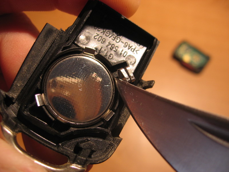- далее остается только вынять батарейку. Когда устанавлием новую, главное не перепутать полярность - "плюсом" вниз, в гнезде метка специальная даже есть